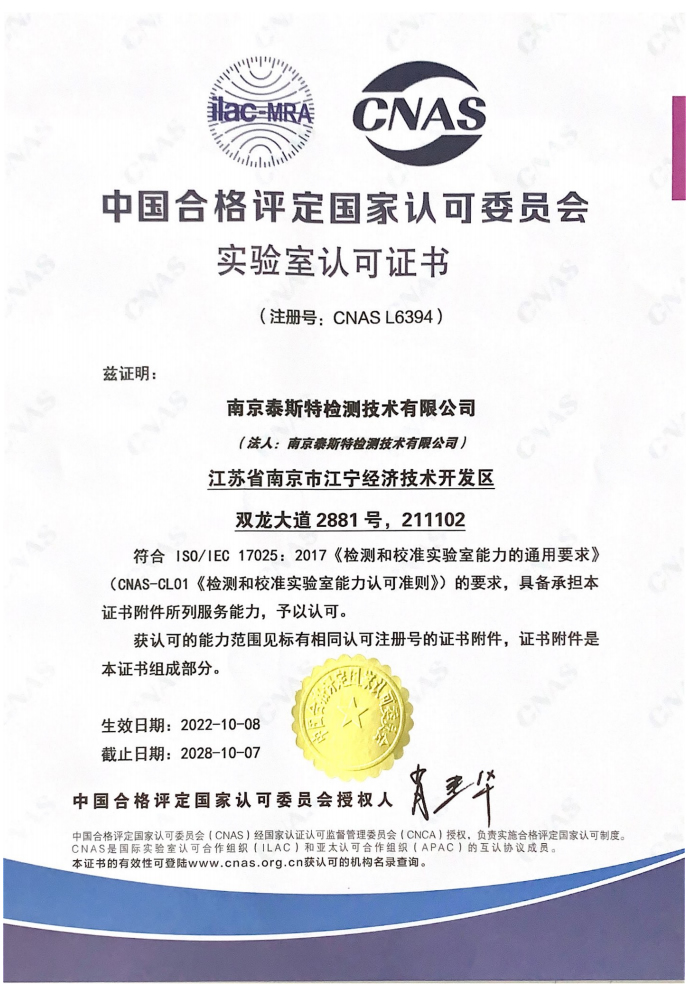 南京泰斯特檢測技術有限公司是一家通過國家實驗室認可的檢測與校準實驗室。公司秉承“準確、傳遞、服務、發展”的質量方針,為各類企業提供優質高效的技術服務......